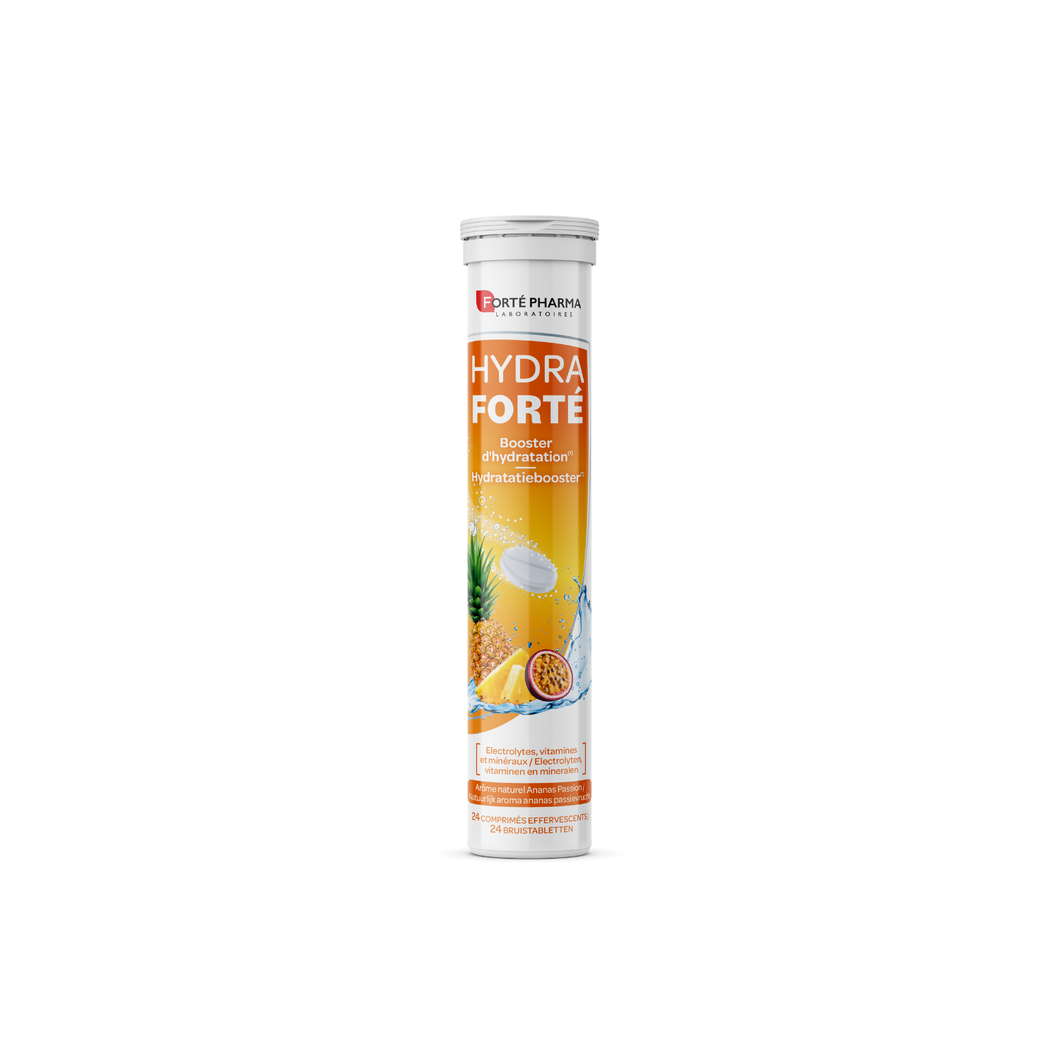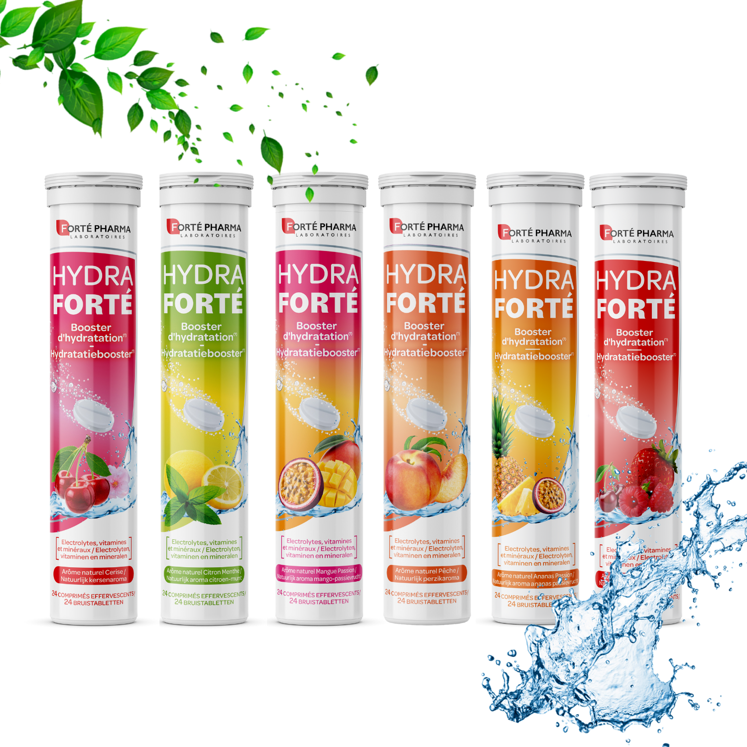 La gamme Hydra Forté associe des électrolytes (un ensemble de minéraux essentiels pour l’organisme) et des vitamines pour favoriser un bon équilibre électrolytique(1) permettant une bonne hydratation au quotidien.
